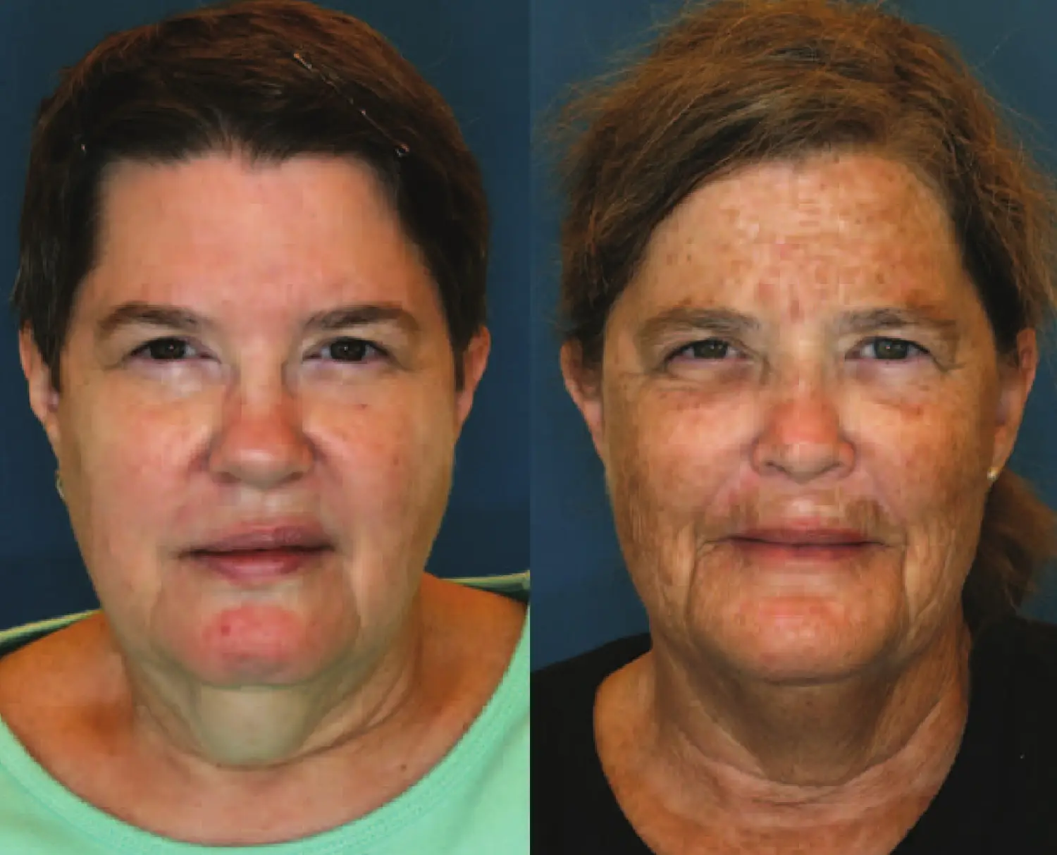Identical twins (natural age 61) with significant difference in lifestyle and sun exposure.