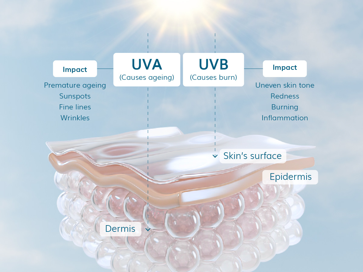 Broad Spectrum Protection: Effective at blocking UV rays, including UVB rays (the primary cause of sunburn) and UVA rays (which penetrate deeper and contribute to premature ageing and wrinkles).